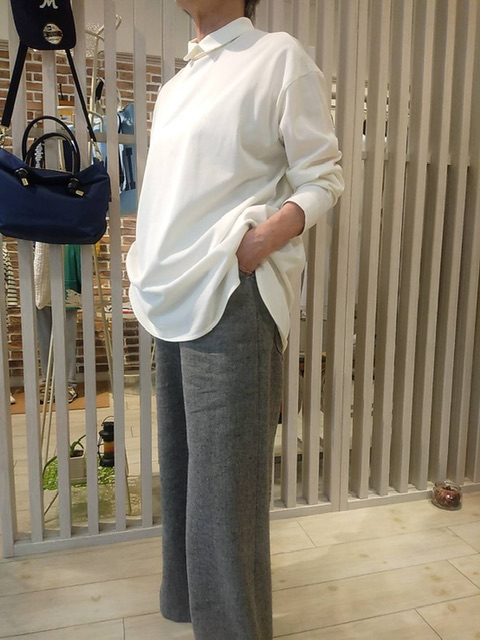 襟付きトップス+ワイドパンツ