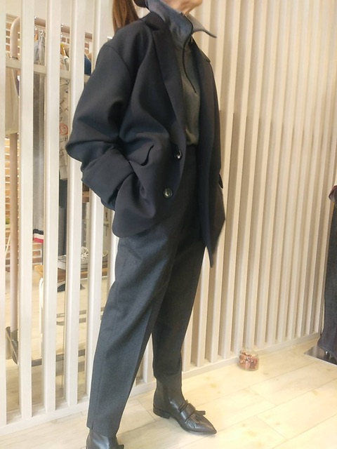 黒ジャケットで引き締めて。
